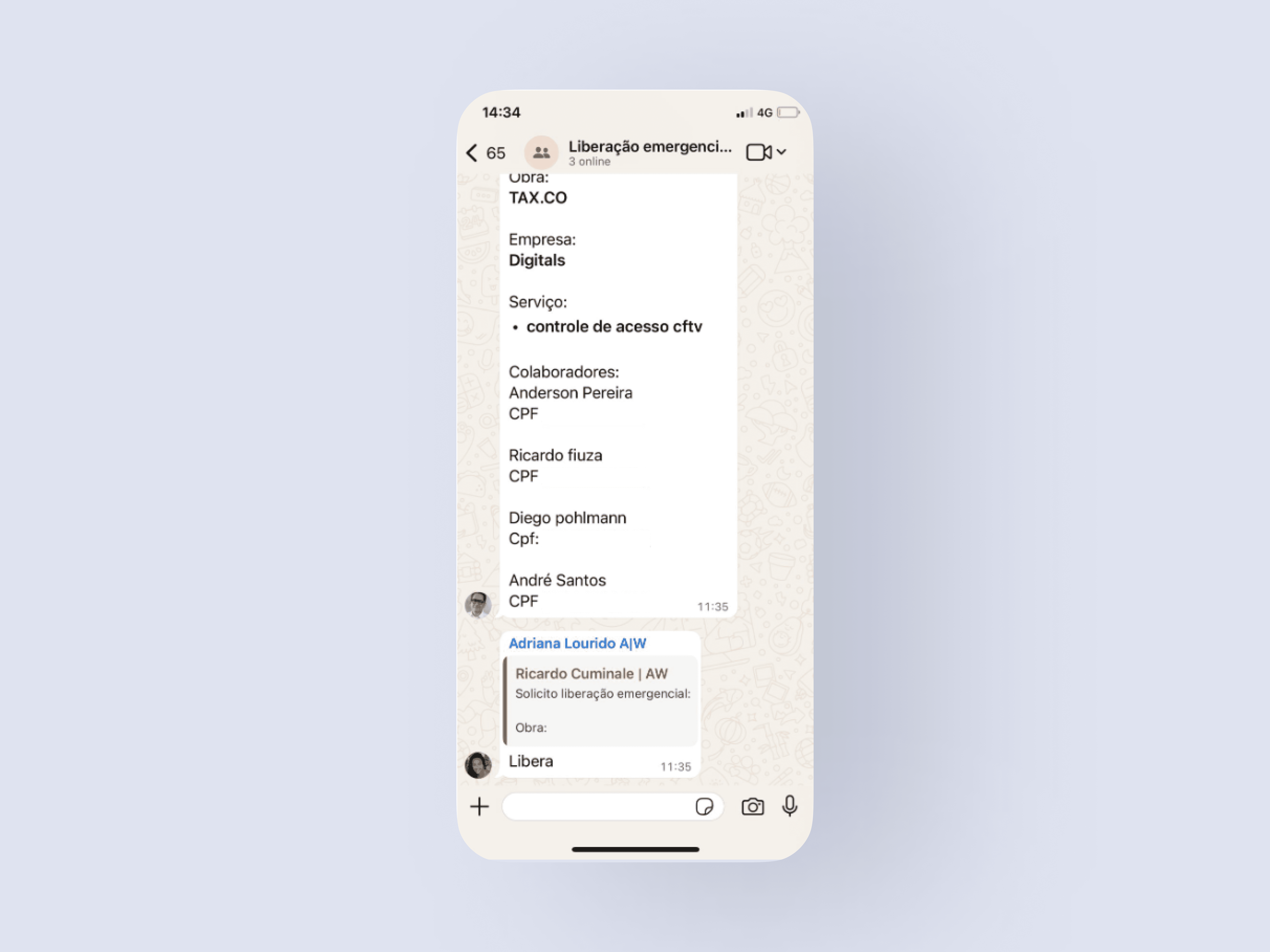 O processo para liberar um colaborador com pendências era o principal gargalo para o início do trabalho em uma obra. A operação inteira dependia de um grupo de Whatsapp, o que gerava uma série de dores críticas.